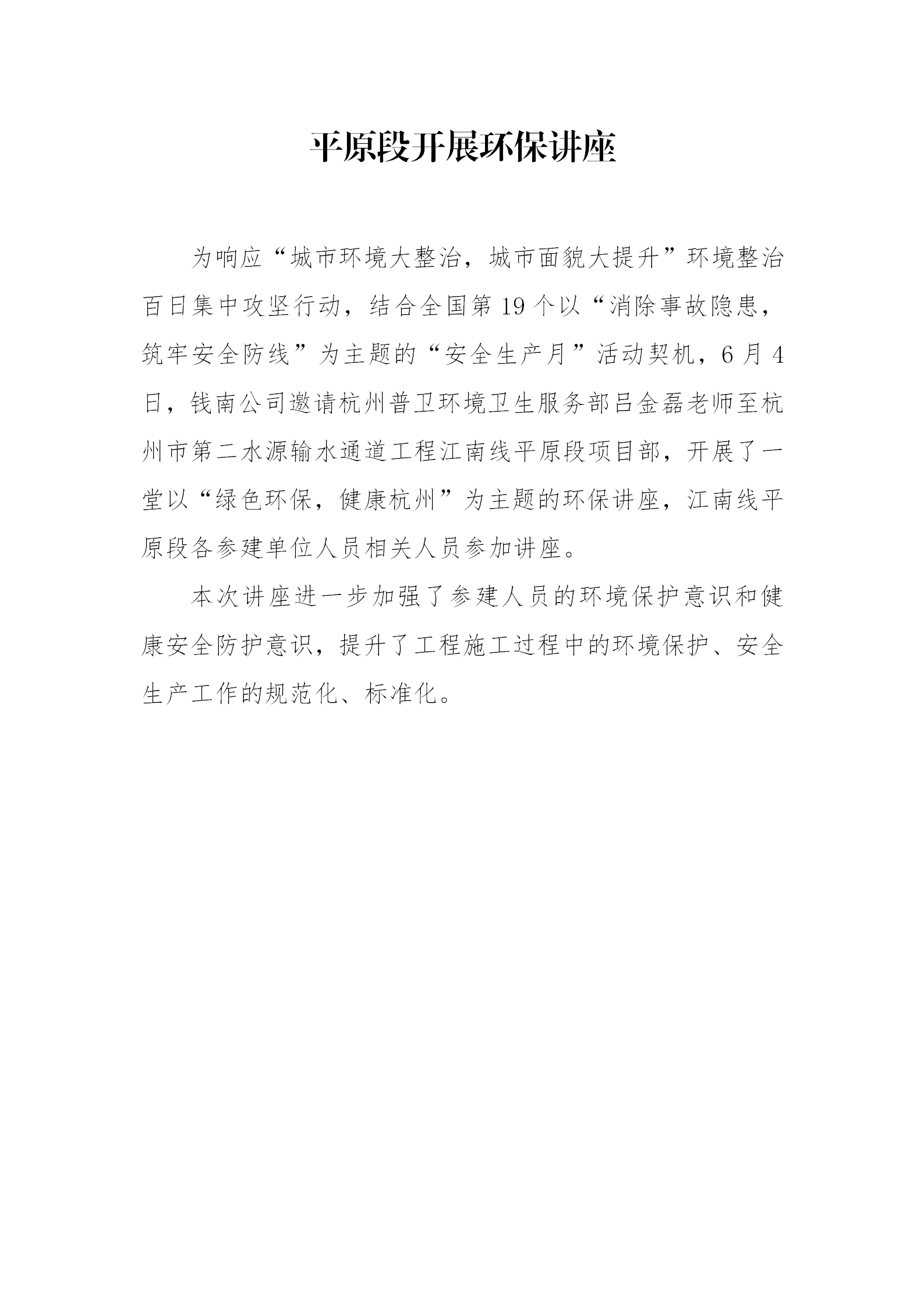 钱南公司平原段开展环保讲座