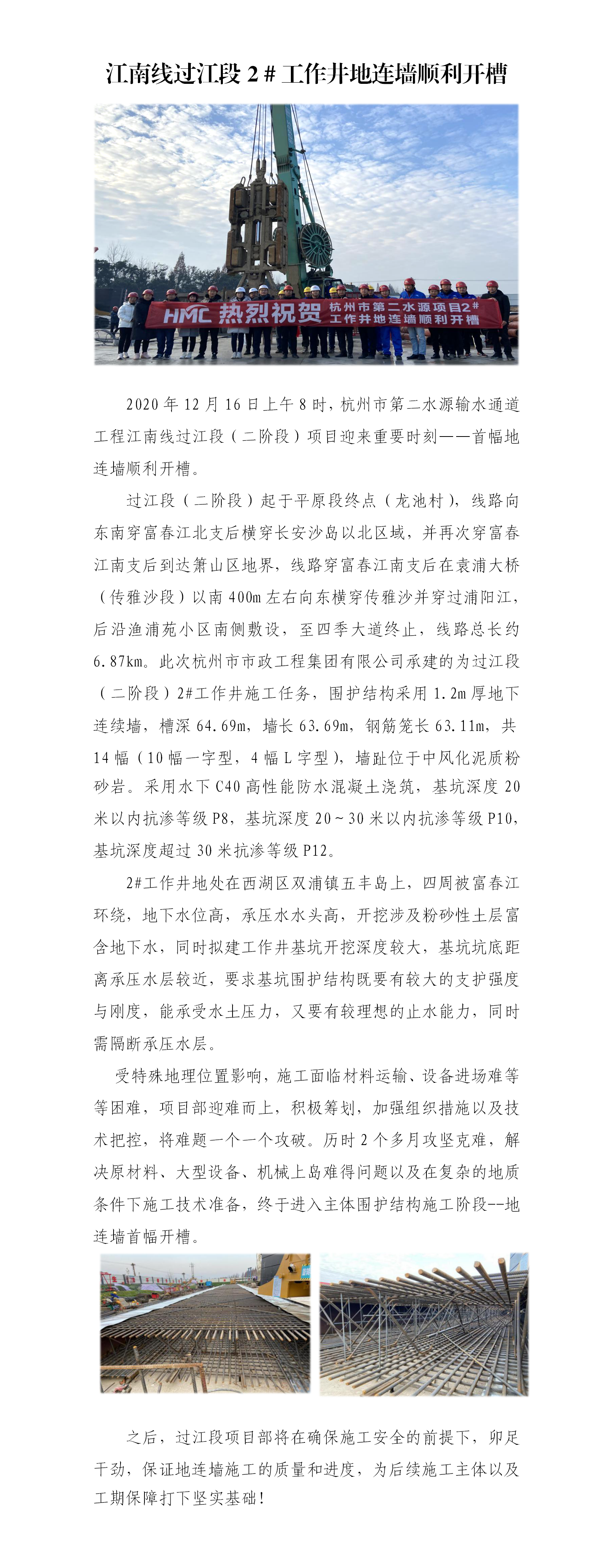 江南线过江段2#事情井地连墙顺遂开槽